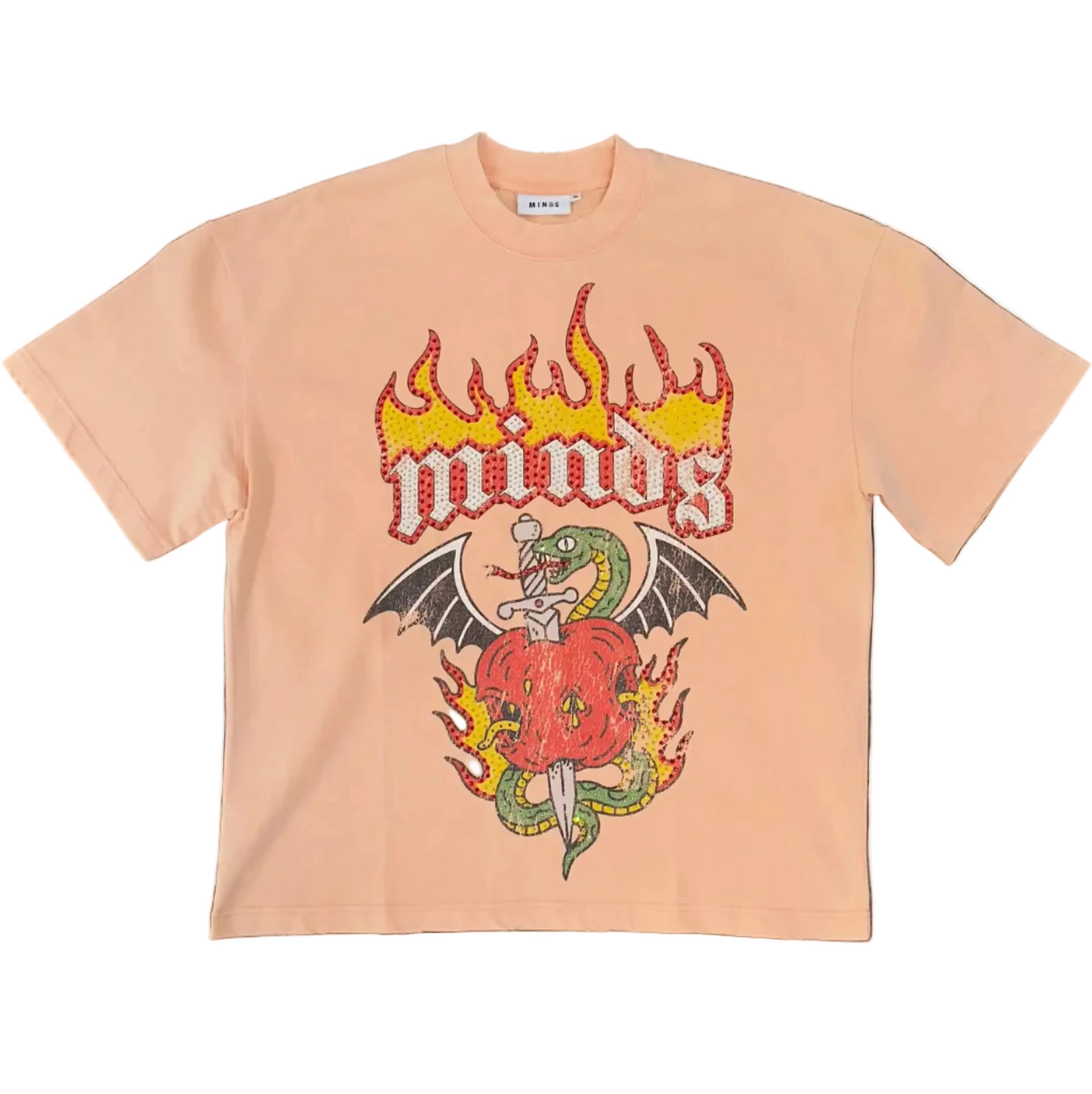 Ignite your style with the Minds "Inferno" Tee—a bold statement piece elevated with premium rhinestone detailing. This daily essential combines comfort with eye-catching sparkle, perfect for turning heads whether you're out running errands or making a night out. The shimmering accents catch the light beautifully, adding luxury to your everyday wardrobe.